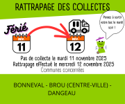 Le mardi 11 novembre 2025 sera férié. Les collectes ne seront pas assurées ce jour mais seront rattrapées le mercredi 112 novembre 2025.